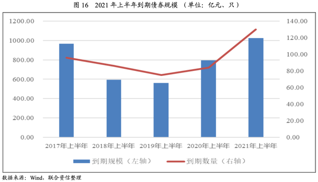 2021年上半年,化工行業(yè)債券到期規(guī)模為1024.40億元,同比增長28.92%;債券到期數(shù)量為130只,同比增長54.76%;主要系2020年新冠肺炎疫情爆發(fā),為盡快恢復經(jīng)濟,國內(nèi)營造了階段性寬松的融資環(huán)境,化工行業(yè)發(fā)行的短期融資債券規(guī)模較大,上述部分短期融資債券在2021年上半年陸續(xù)到期。