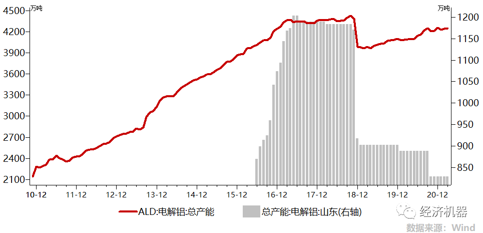 2)我國供給側改革。這個是過去幾年,影響大宗商品供給的最重要因素。過去幾年,我國對鋼鐵、水泥、電解鋁、玻璃等行業進行了力度空前的供給側改革,核心就是去產能。在需求保持穩定,甚至小幅增長情況下,供給持續壓縮,使“4萬億刺激”導致的產能過剩問題近年來顯著緩解。以電解鋁為例,“合規產能”從最高的4428萬噸,一度降至3963萬噸??紤]到之前有很多不合規產能在運行,實際去產能力度更大。其中山東產能從1200萬噸,降至828萬噸,降幅高達30%。