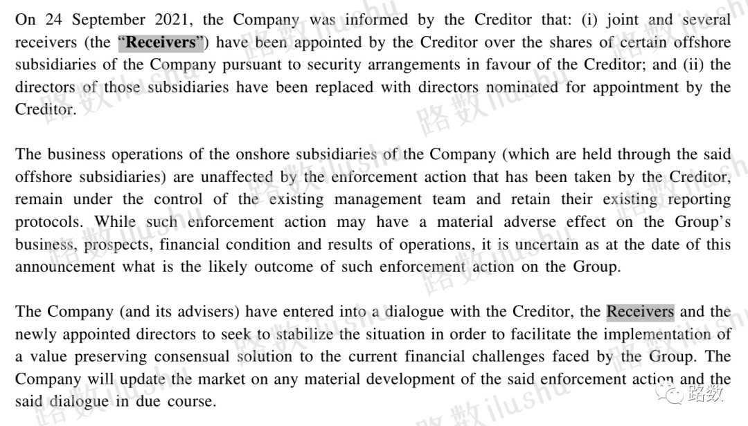 新力也在“積極”應對,930公告中稱,公司正在和新接管人進行對話,尋求穩定情況,以加快實施各方一致同意且保值的解決方案,會及時披露進展。