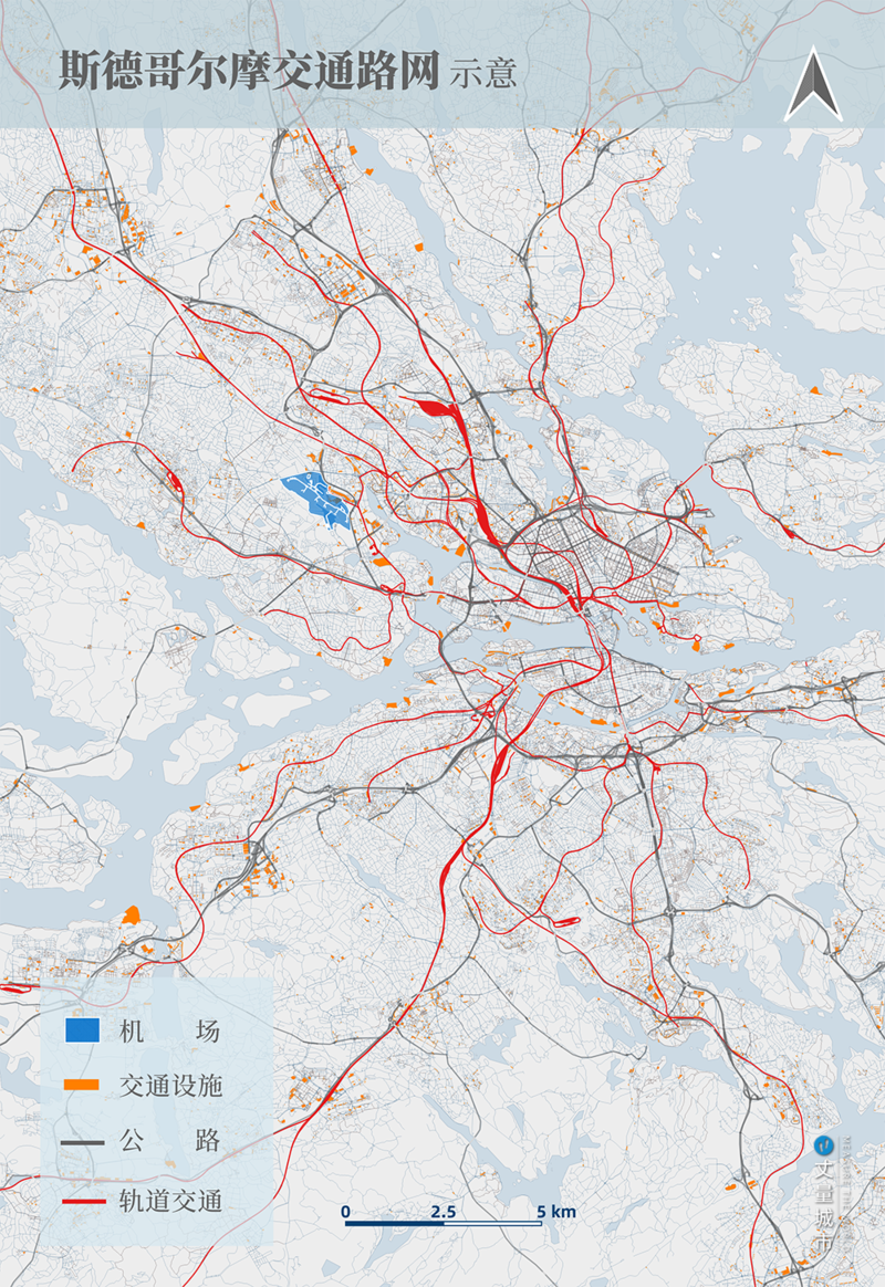 由于地理空間的限制,斯德哥爾摩很早開始發展軌道交通。到了新城建設時代,軌道交通網絡上發展起一個個「自供自足」的TOD新城。