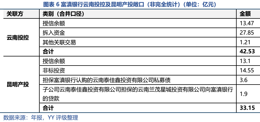 此外,通過對公司審計報告等資料的梳理,據不完全統計,云南省及昆明市主要平臺共獲得富滇銀行的授信額度達309.8億元,貸款余額為88.9億元,其他小平臺可能零散也有些授信,區域整體來講要關注城投后續的再融資邊際。