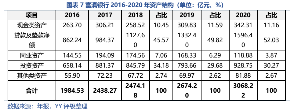 現金類資產主要是由法定存款準備金所構成,該部分資金隨著存款規模上升而被動增加,近三年來占比波動不大。