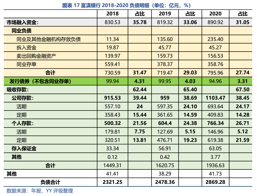 富滇銀行在同業間認可度不高,背后可能要從資產流向(大量流向認可度相對較低的省內城投)方面找原因,反應其負債端成本剛性且過高,同業負債的可得性也可能走弱。