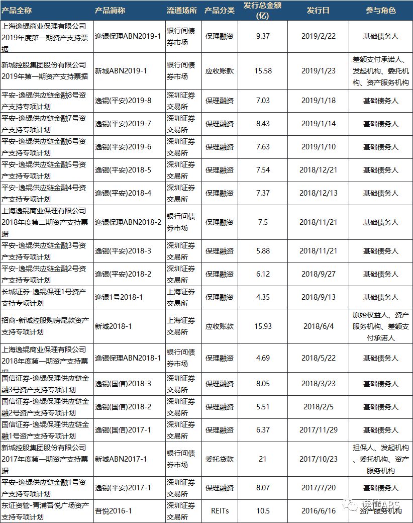 2019年2月22日,上海逸錕商業(yè)保理有限公司2019年度第一期資產(chǎn)支持票據(jù)成功發(fā)行,產(chǎn)品總規(guī)模9.37億元。