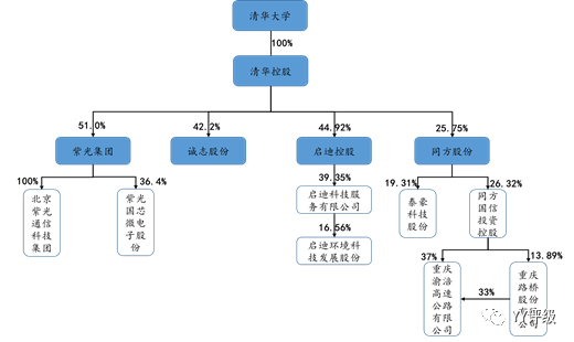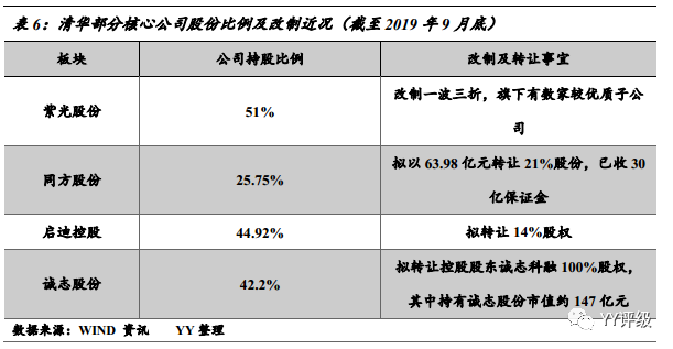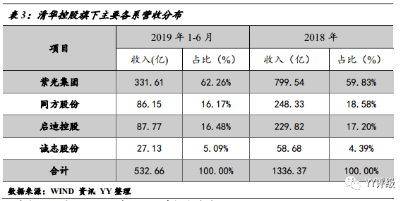 圖2:清華控股及下屬子公司股權(quán)結(jié)構(gòu)(截至2019年6月 YY整理)
