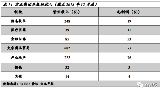 方正集團(tuán)在產(chǎn)業(yè)布局端亦是一“絕“,行業(yè)“綜合”以至于眼花繚亂,具體來(lái)看,主要有信息技術(shù)板塊、醫(yī)藥醫(yī)療業(yè)務(wù)板塊、鋼鐵業(yè)務(wù)板塊、大宗貿(mào)易業(yè)務(wù)板塊(做大營(yíng)收的利器,內(nèi)里一地雞毛)、地產(chǎn)板塊、教育業(yè)務(wù)板塊、金融證券板(核心中的核心)。