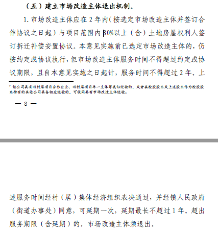 3、新政明確了市場改造主體的退出機制,建議:(1)嚴格按照政策要求期限,制定相關工作計劃;(2)項目拓展過程中,將該兩年內與項目范圍內80%以上土地權利人簽訂拆遷補償安置協議作為重大事項與合作方或平臺方進行溝通,將該事項的完成作為主要的服務費支付基礎或合作基礎,嚴格設置完成期限并設置相應的違約處理機制。