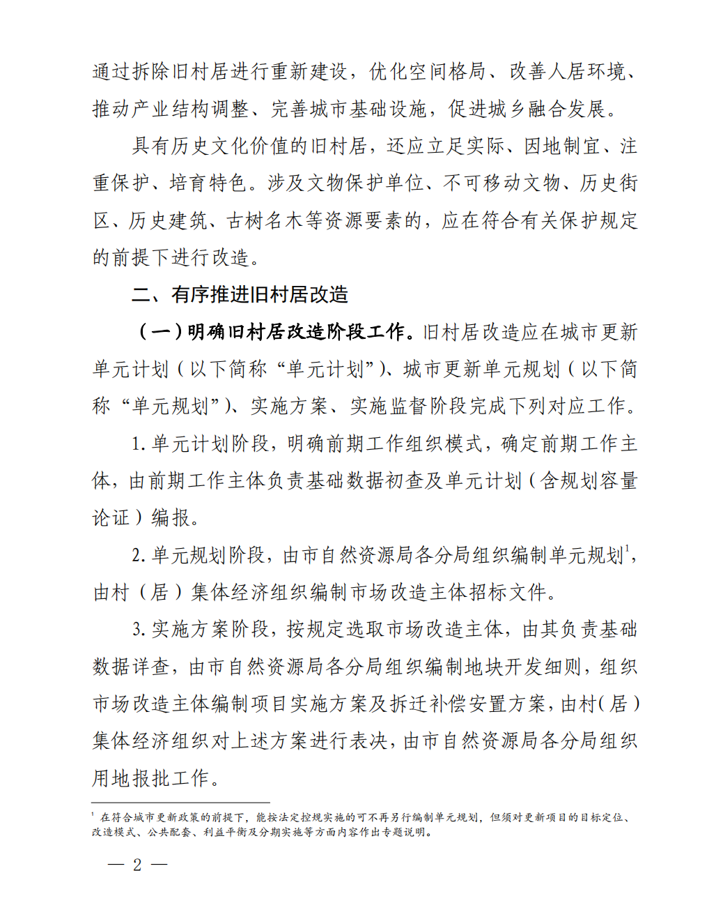 本部分明確了兩個內容:1、明確舊村居改造階段工作;2、明確由各區人民政府建立年度實施計劃機制。