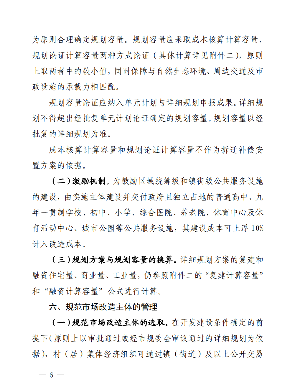 注意事項:本部分主要內容明確了規劃容量的論證方式、實施主體建設鎮、街級公共服務設施建設成本可上浮納入改造成本的激勵機制等。