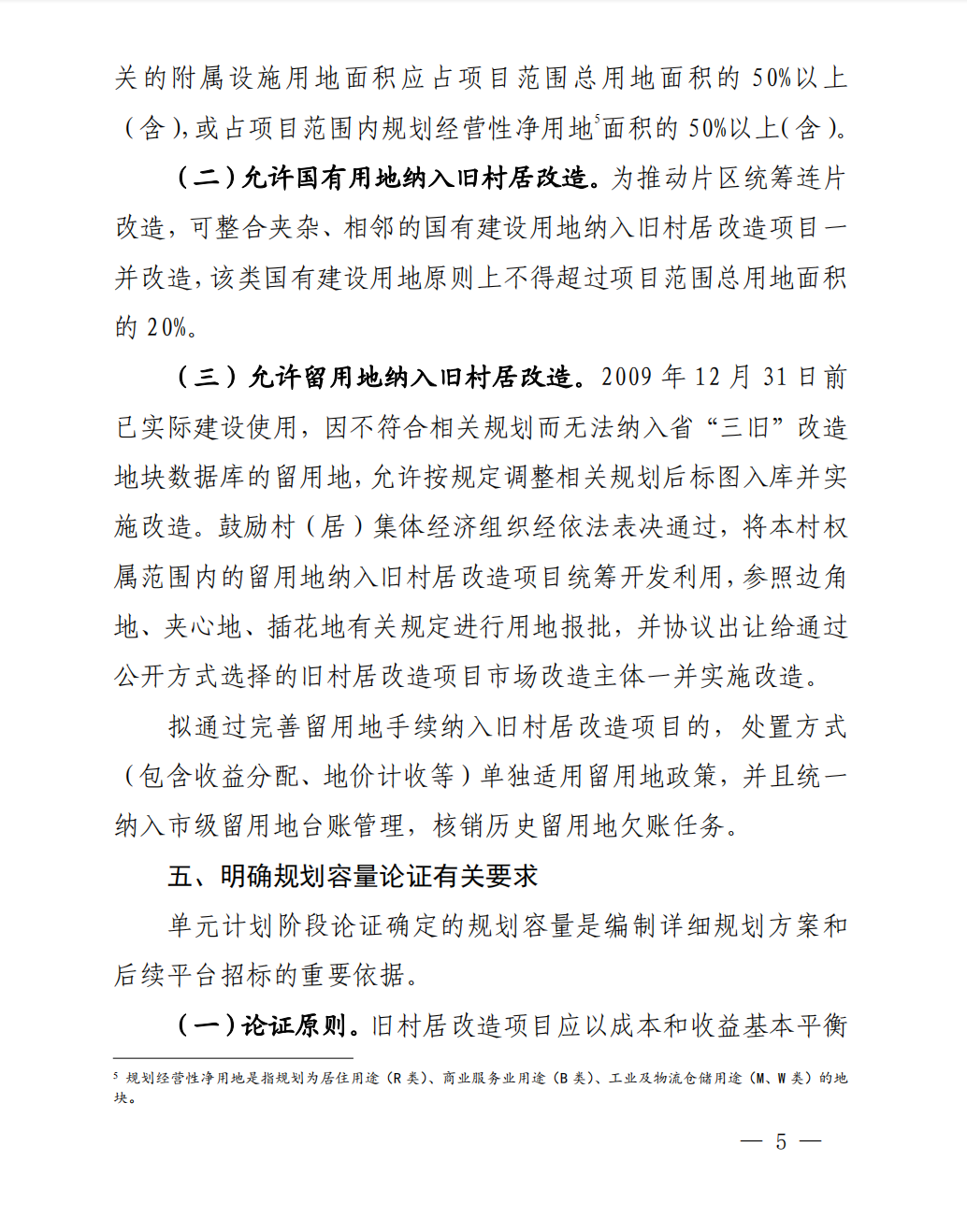本部分內容由三部分政策組成:1、優化舊村居改造項目用地構成;2、允許國有用地納入舊村居改造;3、允許留用地納入舊村居改造。