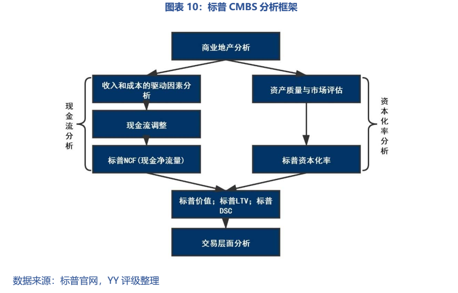 標普的全球CMBS評級較為全面,核心是推導出長期可持續(xù)現(xiàn)金流(標普NCF)的潛力和價值。