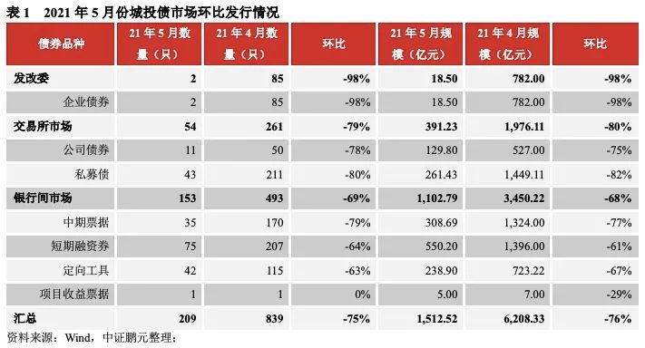 一、嚴監管下,5月城投債發行大幅下降