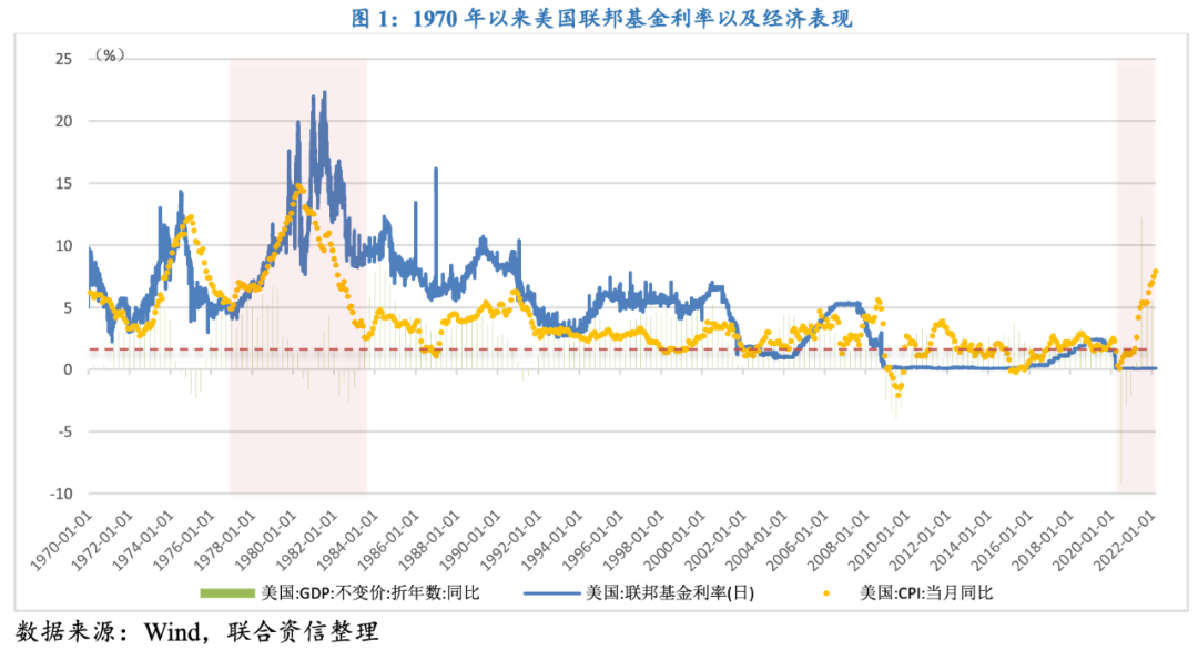 本輪美聯(lián)儲(chǔ)貨幣政策收緊的背景與20世紀(jì)70年代末-80年代初相似,均面臨前期貨幣政策長(zhǎng)期寬松、局部戰(zhàn)爭(zhēng)爆發(fā)導(dǎo)致石油價(jià)格攀升以及通脹壓力大幅走高等問題,在相似的時(shí)代背景下,本次美聯(lián)儲(chǔ)選擇收緊貨幣政策正當(dāng)其時(shí)