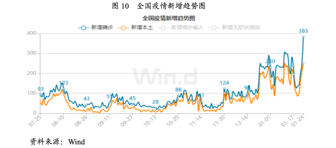 隨著新冠疫苗接種率的不斷提升,各個國家和地區(qū)疫情防控進入常態(tài)化。近期國內(nèi)當(dāng)日新增本土確診病例數(shù)有所反復(fù),由于我國部分周邊國家疫情快速上升,我國外防輸入壓力持續(xù)加大;疊加季節(jié)因素,容易引發(fā)疫情傳播擴散。根據(jù)國家衛(wèi)健委統(tǒng)計數(shù)據(jù),截至2022年1月22日,國內(nèi)現(xiàn)有本土確診病例5606例,境外輸入確診病例1137例。國內(nèi)當(dāng)前疫情防控形勢仍較為嚴峻復(fù)雜。