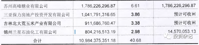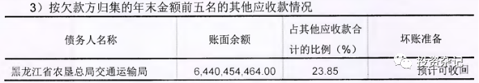 北大荒2019年底其他應(yīng)收款227.02億,占總資產(chǎn)比重11.4%,規(guī)模和占比是比較大的,且三年以上其他應(yīng)收款占比達(dá)到了39.23%,賬齡偏長(zhǎng),整體其他應(yīng)收款質(zhì)量是比較差的。這里面很大一部分是非經(jīng)營(yíng)性占款,被股東或者關(guān)聯(lián)方占用了,欠款最多的就是黑龍江農(nóng)墾局交通運(yùn)輸局,占用了64億,三亞保力房地產(chǎn)是黑龍江建投下面的地產(chǎn)公司,公司拆借了10億給他,第五名錦州蘭星石化是個(gè)民企,公司拆借了8億。僅僅這前五大,非經(jīng)營(yíng)占款就達(dá)到了90億左右,而且前五大占比近40%,后面還有60%也就是130多億沒(méi)有披露明細(xì),這里面很可能還有很多非經(jīng)營(yíng)占款。這么大金額被挪用到體外的資金我們是很難在北大荒自己的資料里面跟蹤到其這部分被占用資金的實(shí)際風(fēng)險(xiǎn)的。