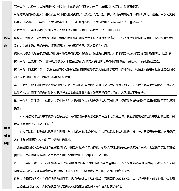 如果經(jīng)常處理債權(quán)回收工作,你就會(huì)發(fā)現(xiàn)向債務(wù)人、保證人發(fā)函主張權(quán)利,不錯(cuò)過(guò)保證期間和訴訟時(shí)效,也是工作的一部分,因此保證期限、訴訟時(shí)效的計(jì)算作為實(shí)現(xiàn)債權(quán)的前提,重要性不言而喻。考慮到相關(guān)規(guī)定比較繁瑣,我們特別以時(shí)間軸的方式為大家展現(xiàn)了一般保證和連帶保證責(zé)任的保證期間和訴訟時(shí)效計(jì)算規(guī)則。