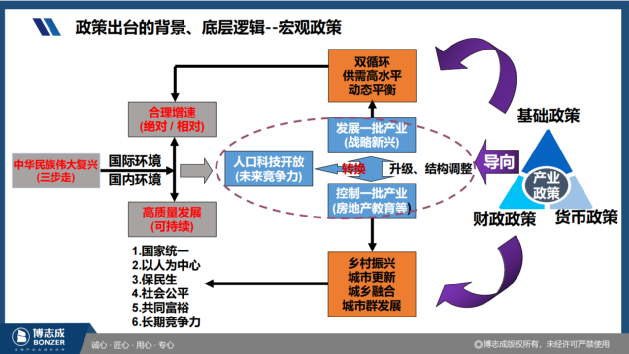 國際環(huán)境錯綜復盤,國內矛盾依然突出,近期政策明確釋放出控制一批(房地產(chǎn)、教育等)、發(fā)展一批(戰(zhàn)略新興)的產(chǎn)業(yè)結構調整與升級信號,人口科技開放的牽引政策,都國內大循環(huán)為主體、國內國際雙循環(huán),促進產(chǎn)業(yè)結構優(yōu)化、消費升級的手段。