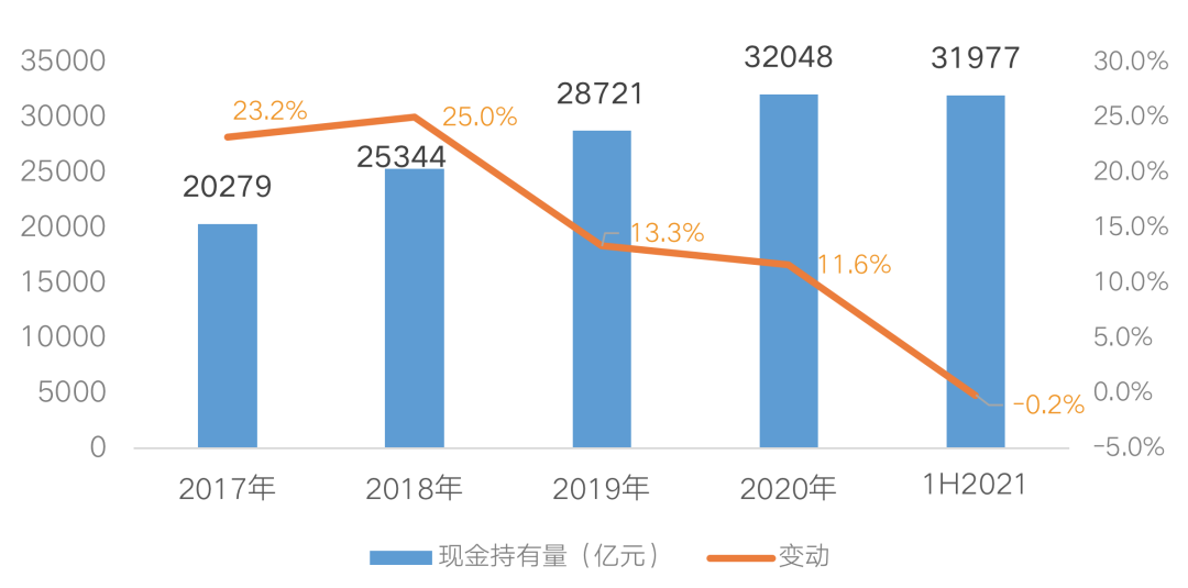 行業進入緩慢增長期,近年來房企持有現金的增速呈現下降的趨勢,由2017、2018年的20%以上的增速下降到2019、2020年的10%左右。而自2020年下半年三條紅線出臺以來,房企持續加強降杠桿,融資性現金流出增加;疊加房貸集中度管理制度的“兩條紅線”出臺,房企的銷售回款周期加長,上半年部分房企的銷售回款率出現一定程度的下降,致使房企整體現金持有量減少。