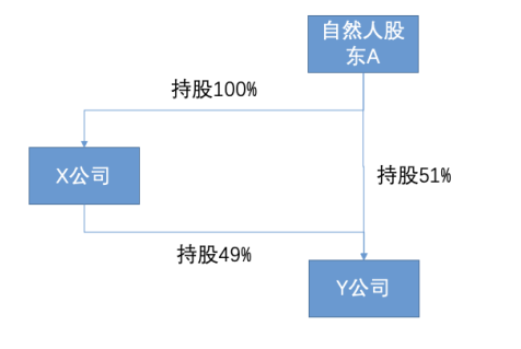 在該投資結構中,雖然Y公司自身并非一人公司,但是自然人股東A仍然通過直接控制X公司,間接完成對Y公司的100%控股。表面上,Y公司的股權結構并不符合“一人公司”的特點,但是實質上與一人公司并無差別,同樣會造成股東利益高度集中、內部制衡監管機制缺位的問題。因此,對于該情況下將普通公司認定為“實質上”的一人公司,符合《公司法》第六十三條的立法目的,也符合公平原則的要求。