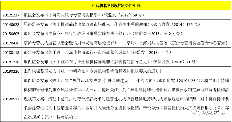 1、2017年后,監管環境開始明顯趨嚴,監管部門整體上貫徹了“開正門、堵偏門”的政策思路,對異地非持牌機構進行清理整頓,同時亦批籌一些合規的專營機構,此時獲批的專營機構基本上均有兩個條件,一是母行所在地監管環境較為友好,二是擬籌建專營機構所在地有分支機構且運營兩年以上。