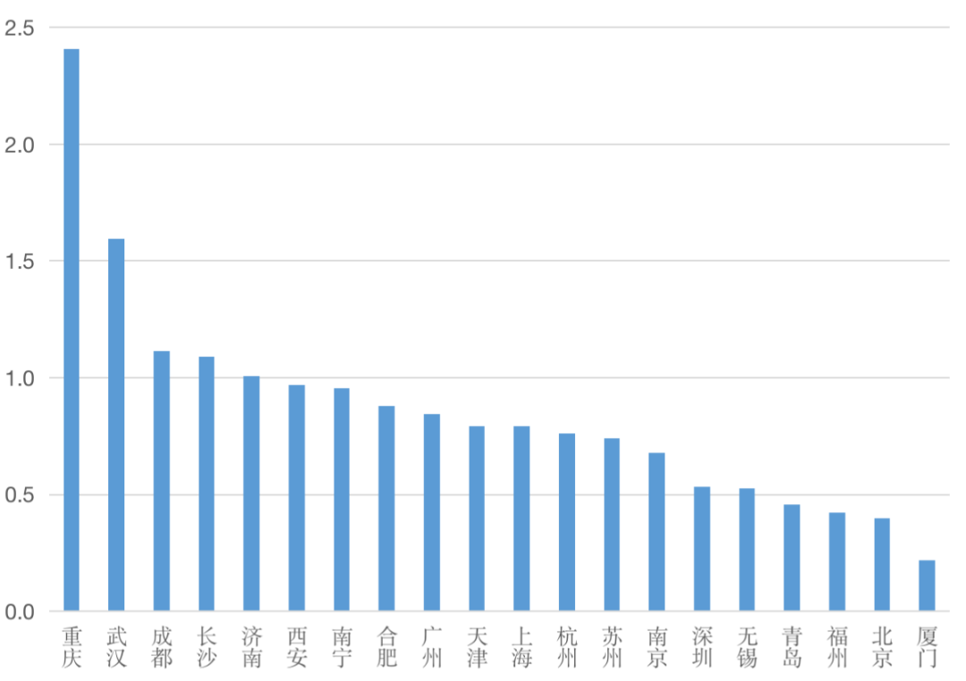 圖:重點(diǎn)20城住宅平均物業(yè)費(fèi)