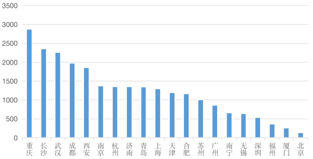 從數(shù)據(jù)看,重慶、長(zhǎng)沙、武漢、成都等中西部城市表現(xiàn)依然強(qiáng)勁,重慶成交規(guī)模2877萬(wàn)平方米居首位。隨著項(xiàng)目的建設(shè)交付,這些項(xiàng)目將在未來(lái)一年轉(zhuǎn)化為該城市企業(yè)拓展的對(duì)象,重慶新項(xiàng)目規(guī)模將進(jìn)一步與其他城市拉開(kāi)差距。