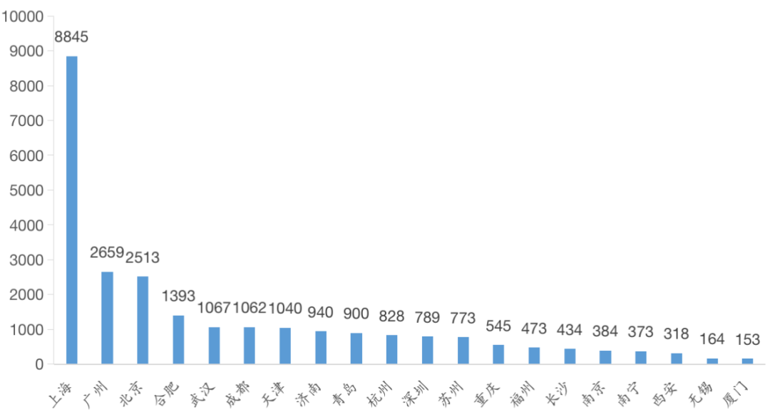 聚焦重點(diǎn)20城數(shù)據(jù),上海在2021年全國(guó)物業(yè)管理服務(wù)招投標(biāo)市場(chǎng)最為活躍,全年累計(jì)中標(biāo)項(xiàng)目達(dá)8845個(gè)。廣州排在第二位,但中標(biāo)項(xiàng)目數(shù)量不足上海的三分之一。