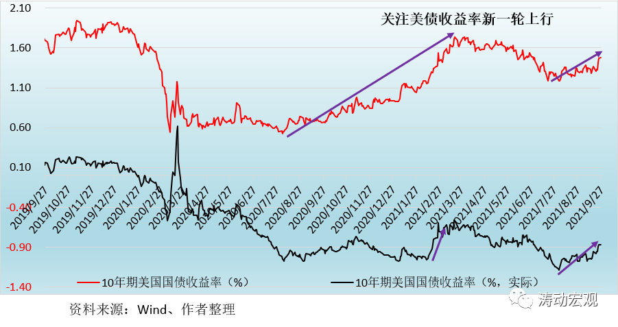 1、2021年8月4日以來,10年期美債名義收益率由1.20%附近升至目前的1.48%附近,在將近兩個月的時間里累計上升了28BP。