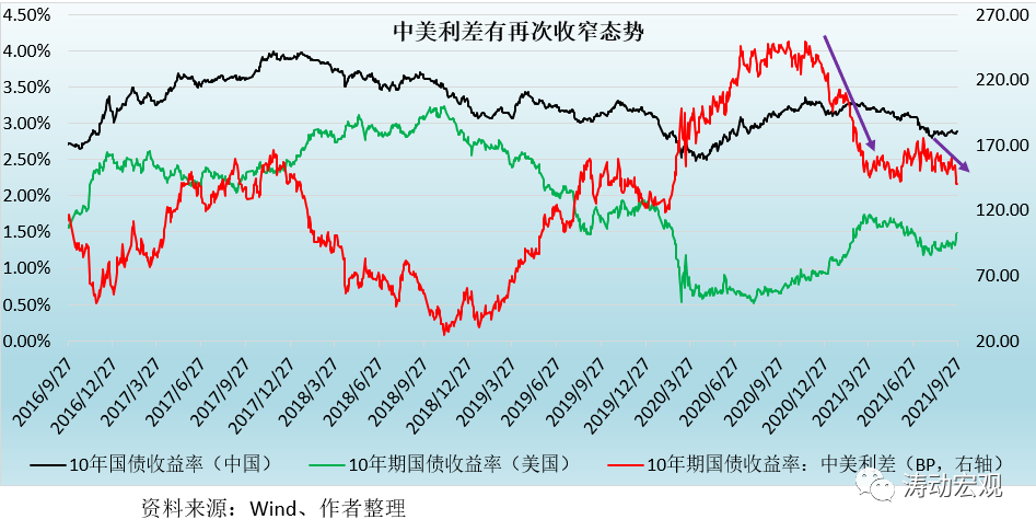 美債收益率的上行直接影響著中美利差的變化。