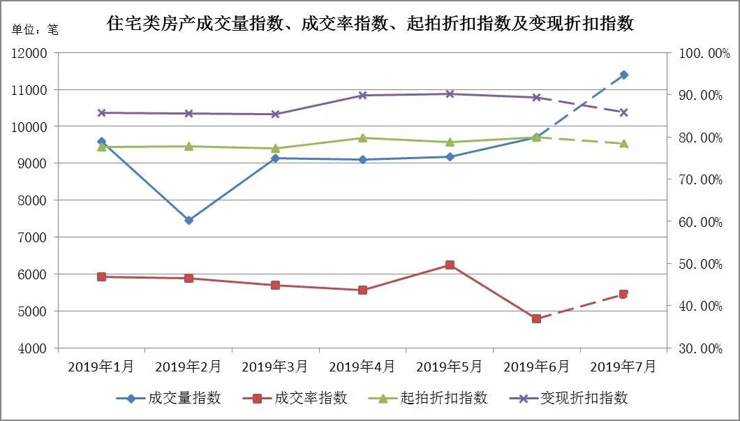 (二) 住宅類房產:成交量穩步增長,成交率大幅降低,起拍折扣指數、變現折扣指數保持穩定