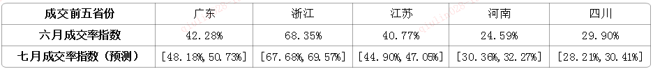 廣東、浙江、江蘇穩居房產類拍賣品成交量前三,本月四川省成交量進入前五;前五省的成交率指數與變現折扣指數均明顯下降,說明前五省的拍賣房產流動性與市場投資認可度都在降低。