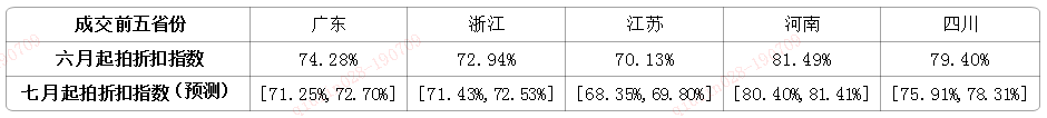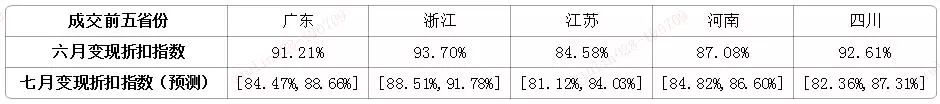 (四) 變現折扣指數:前五省變現折扣指數顯著下降,廣東省降幅最大