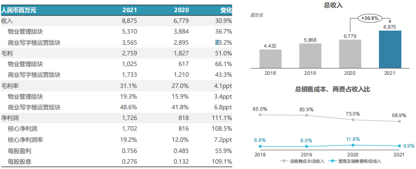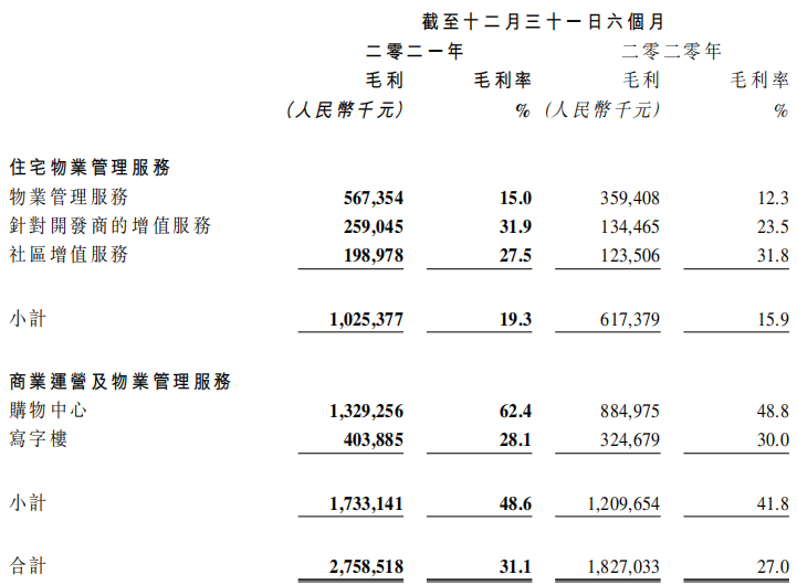報告期間內,毛利率方面,整體毛利率增加至31.1%,其中物管板塊增長至19.3%,商管板塊增長至48.6%。