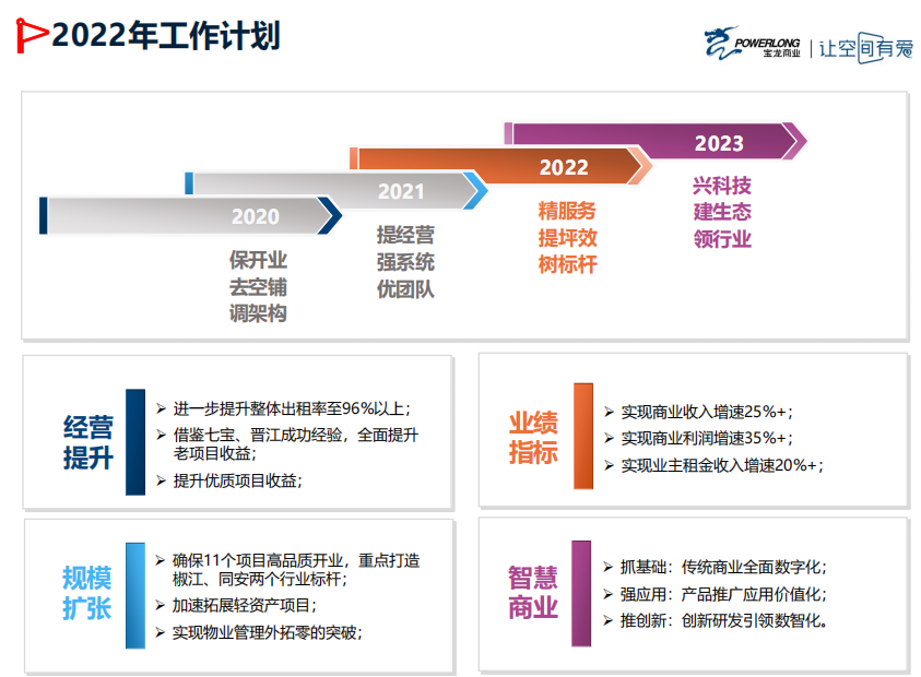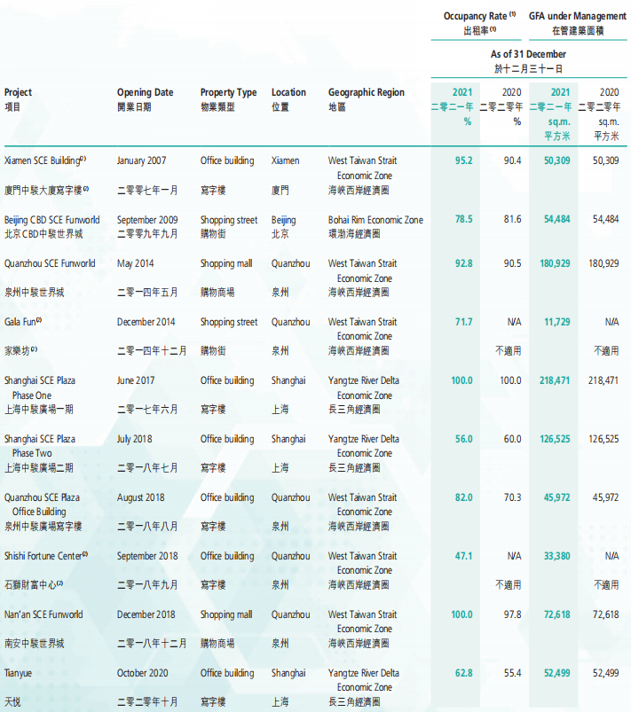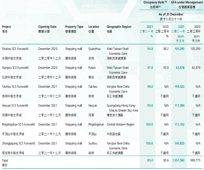 2022年,集團將進一步提升整體出租率至96%以上。確保11個項目開業,其中購物中心不少于8個。并實現商業收入增速25%以上。
