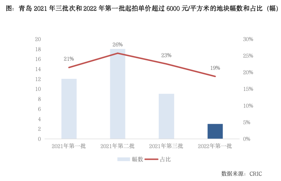02 供地質量不佳疊加樓市遇冷致青島首輪土拍熱度仍在低位