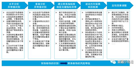 財務維度看,可以通過水平分析異常值、垂直分析異常值、建立分不同行業的財務指標庫,并建立財務智能化自動化分析、財務粉飾識別、會計信息質量識別和財務健康度評價,如下圖: