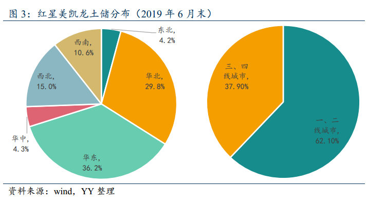 紅星美凱龍從2010年開始進入地產領域,主要是與家居商城捆綁,在紅星美凱龍家居商城附近拿一部分商住用地,由于家居商城的招商引資作用受政府歡迎,因此捆綁拿地有一定優勢。進軍地產總體思路比較正確,也不算偏離主業。紅星美凱龍房地產板塊的核心品牌包括紅星國際廣場、“愛琴海”購物中心,截至 2019 年 6 月末,已開業 19 家愛琴海商場,另有 56 家商場計劃開業。