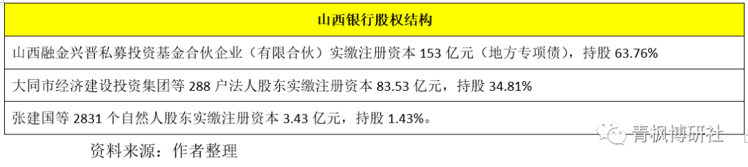 2、山西銀行的注冊資本達(dá)到239.96億(山西發(fā)行的153億元地方專項(xiàng)債便是為了注資山西銀行),原晉商銀行副行長高計(jì)亮任山西銀行董事長。