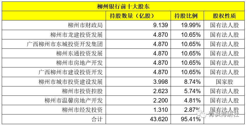 (九)柳州銀行:柳州財(cái)政局入主第一大股東,當(dāng)?shù)貒Y持股95%以上