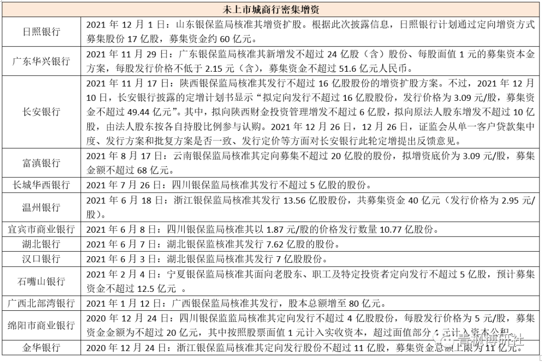 我們預(yù)計(jì),在上市、化險(xiǎn)等動(dòng)力下,未上市城商行的增資潮仍將持續(xù)。