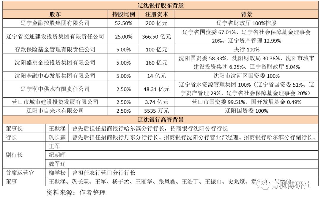 4、新發(fā)起設(shè)立的遼沈銀行注冊資本為200億元人民幣,注冊地址為沈陽,其股東背景主要為沈陽國資委、沈陽財(cái)政局、營口國資委、遼陽國資委等,因此遼沈銀行整體是被定位為省級城商行的。