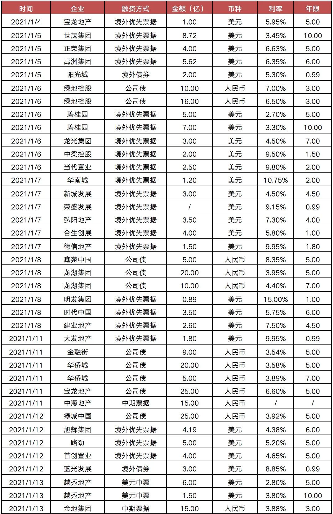 實際上,新年伊始房企迎來新一輪的發債潮,成為近幾年開年的慣例,預計持續到本月月底將會有更多的房企進行發債。