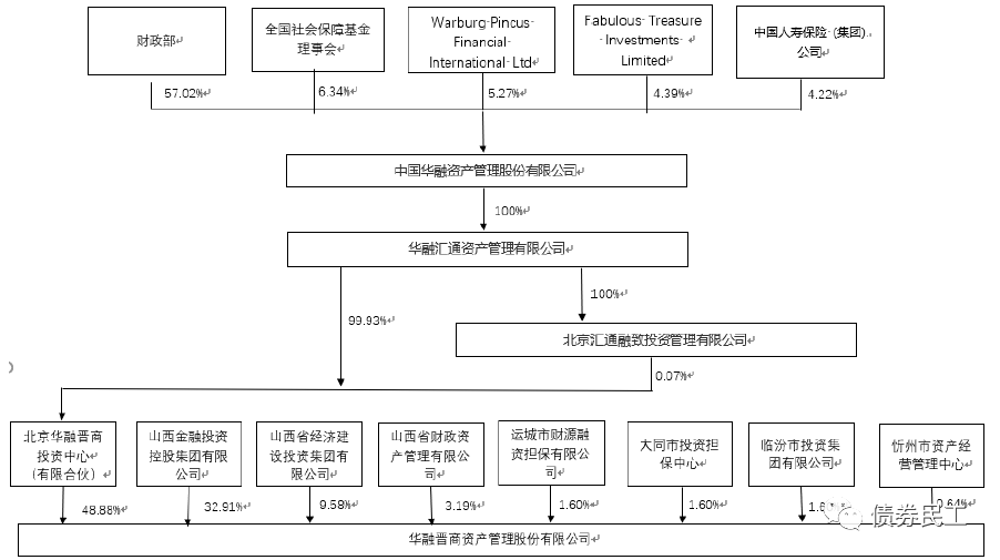 華融晉商成立于2016年2月,于2016年10月8日獲得中國銀監會批準的不良資產轉讓資格。根據“20華融晉商CP001”募集說明書公開的信息,華融晉商的股東數量較多,第一大股東和第二大股東分別是中國華融資產(持股48.88%)和山西金控(持股32.91%),但公司均未納入大股東的合并范圍,目前無實際控制人。