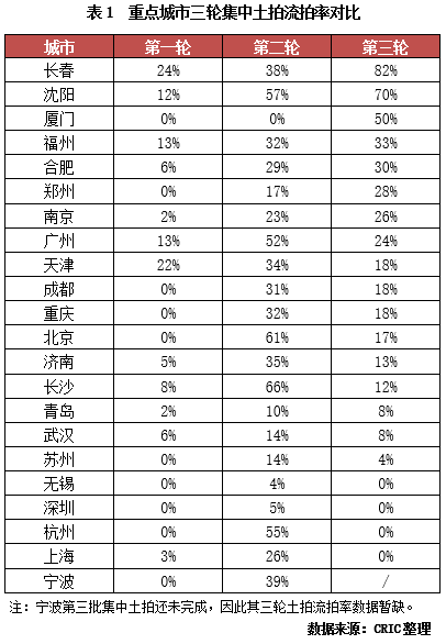 而首輪供地比較少的廈門、深圳兩城第二、三輪供應則明顯放量,尤其是兩城在第二輪土拍中表現也比較佳(廈門零流拍、深圳僅流拍1宗),因此兩城第二、三輪實際成交規模較首輪明顯增加。