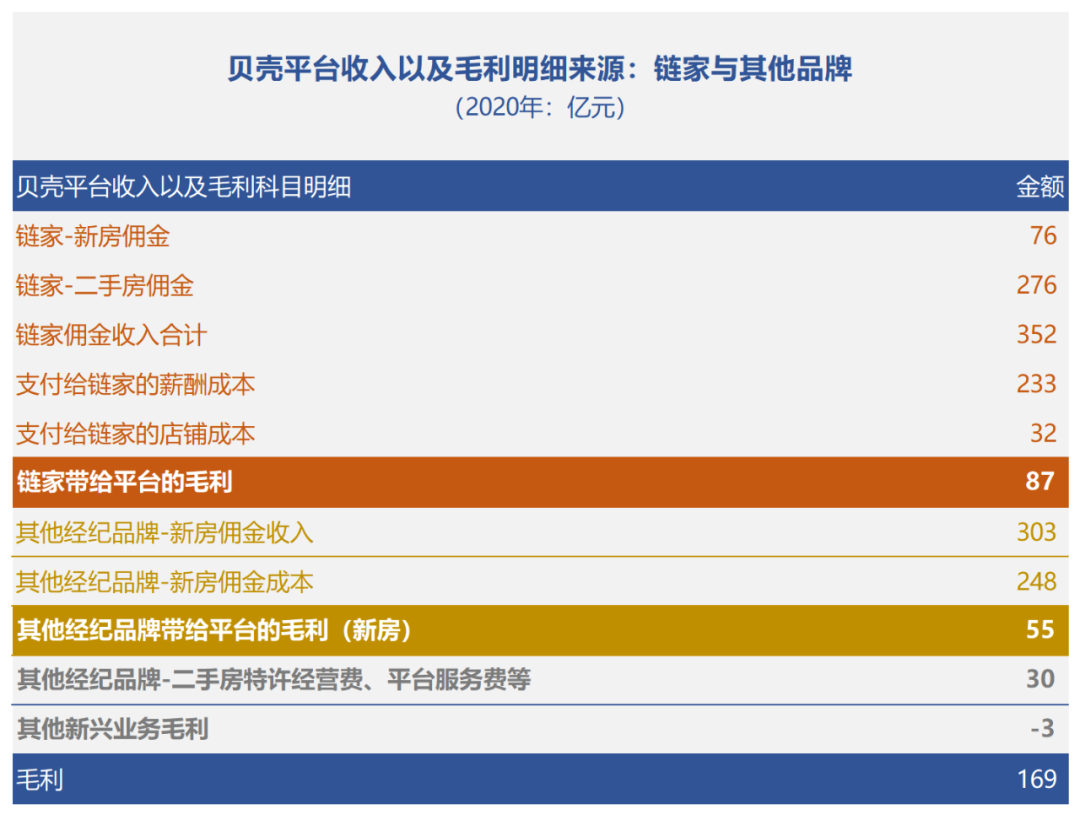 其他經紀品牌貢獻了11063億元的GTV,拿走了248億元的傭金分成,貝殼留下了55億元的毛利。