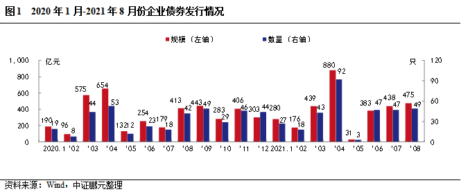2021年8月,企業債券發行49只,發行規模475.10億元,與上年同期相比分別增長16.7%和15.0%;與上月相比,發行數量環比增長4.3%,發行規模環比增長8.5%。2021年1-8月份,企業債券累計發行326只,發行規模475.10億元,較上年同期分別增長48.9%和24.4%。