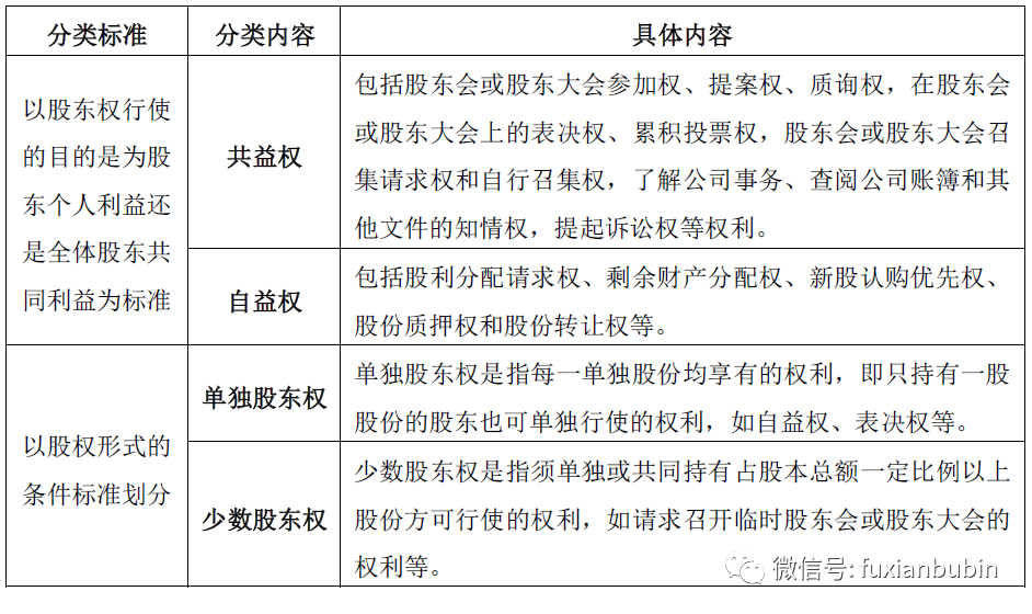 一是股東權(quán)的分類。股東權(quán)是基于股東資格而享有的權(quán)利,公司股東依法享有資產(chǎn)收益、參與重大決策和選擇管理者等權(quán)利。