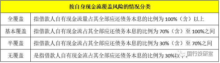 2013年銀監(jiān)會(huì)發(fā)布的《關(guān)于加強(qiáng)2013年地方政府融資平臺(tái)貸款風(fēng)險(xiǎn)監(jiān)管的指導(dǎo)意見(jiàn)》(銀監(jiān)發(fā)(2013)10號(hào))根據(jù)融資平臺(tái)自身現(xiàn)金流覆蓋情況將融資平臺(tái)分為全覆蓋、基本覆蓋、半覆蓋和無(wú)覆蓋等四類(lèi)。當(dāng)然這一分類(lèi)方式是動(dòng)態(tài)調(diào)整的,相當(dāng)于對(duì)融資平臺(tái)進(jìn)行動(dòng)態(tài)評(píng)級(jí)。具體如下: