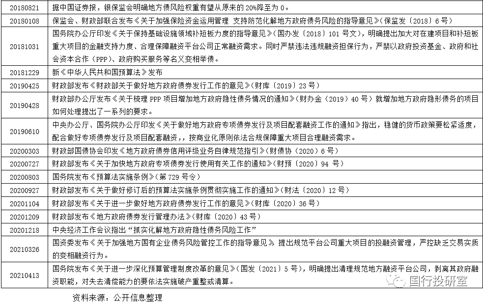 2021年4月13日,國(guó)務(wù)院發(fā)布的《關(guān)于進(jìn)一步深化預(yù)算管理制度改革的意見(jiàn)》明確提出要清理規(guī)范融資平臺(tái)公司,剝離其政府融資功能,對(duì)失去清償能力的要依法實(shí)施破產(chǎn)重整或清算。