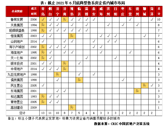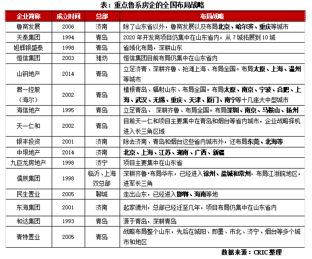1、魯系房企規模普遍偏小,依然有較強地緣性
